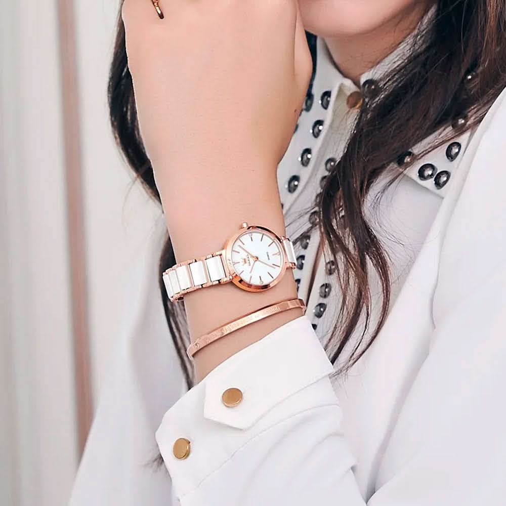 La elegancia convertida en tiempo. Este reloj captura la esencia de los atardeceres romanos donde el oro rosa abraza la muñeca como los reflejos del Tíber al ocaso. La esfera blanca refleja la pureza del mármol de Carrara mientras el acero pulido brilla como las cúpulas de San Pedro. Para mujeres que saben que la verdadera distinción se lleva en cada momento.